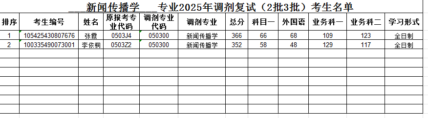 新闻传播学2025年调剂复试(第二批、第三批)考生名单