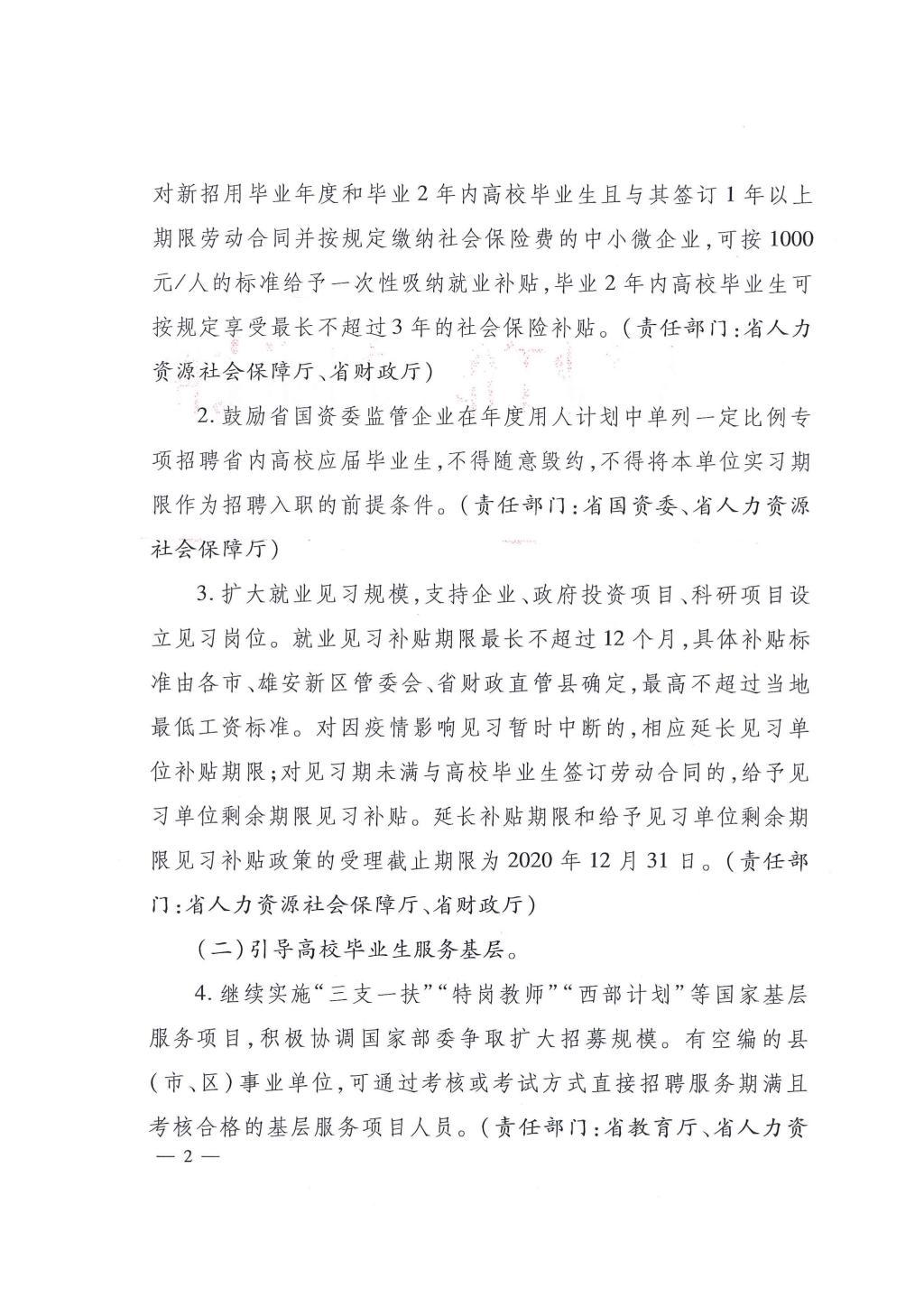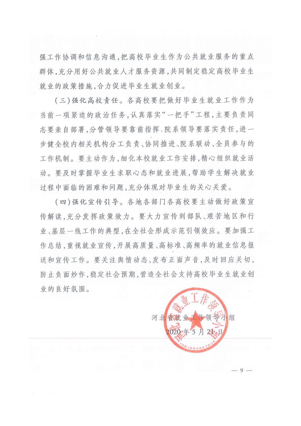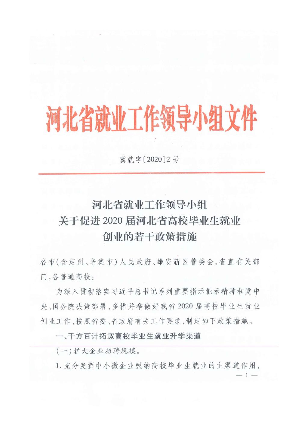 河北省就业工作领导小组关于促进2020届河北省高校毕业生就业创业的若干政策措施