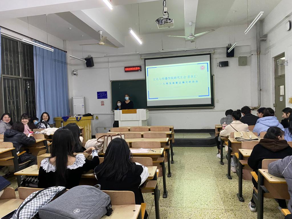 文化与传播学院研究生会于11月5日晚七点在三办B105教室举办主题为“人有没有表达偏见的自由”的思享汇。同学们踊跃发言,积极表达自己的想法。