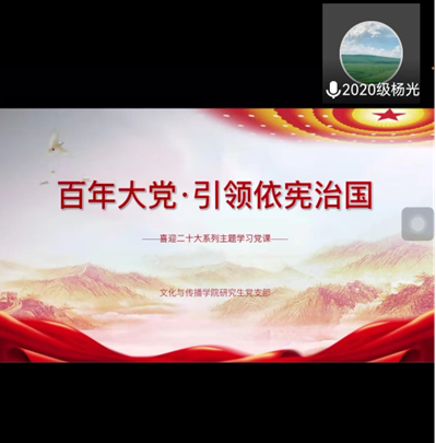 10月5日文化与传播学院研究生党支部全体党员及入党积极分子在线上深入学习了“百年大党引领依宪治国”主题党课。