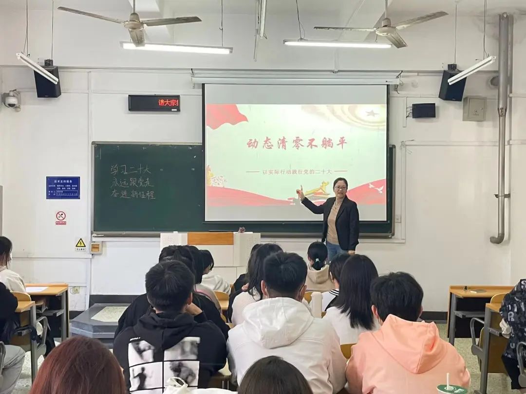 以实际行动践行党的二十大,帮助学生全面认识当前国家“动态清零”疫情防控总方针, 全面了解国家疫情防控形势, 10月19日,文化与传播学院组织开展“坚持‘动态清零’,做好疫情防护”主题班会