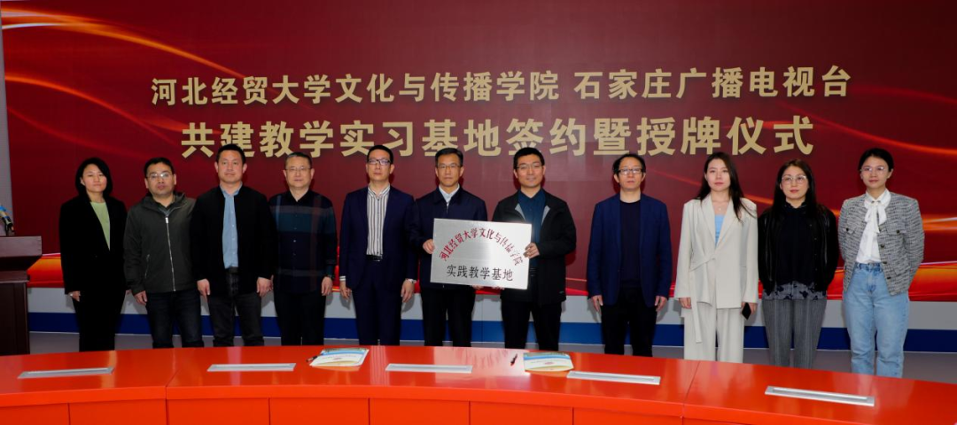 双方在授牌仪式上签署了合作协议,并合影留念。之后双方在座谈环节就如何开展全方位、深层次合作进行了深入交流,为今后的合作发展提供了思路和方向。此次活动奠定了文化与传播学院和石家庄广播电视台的合作关系,开辟了校地互通赋能的新路径,拓展了学生实习就业的新平台。