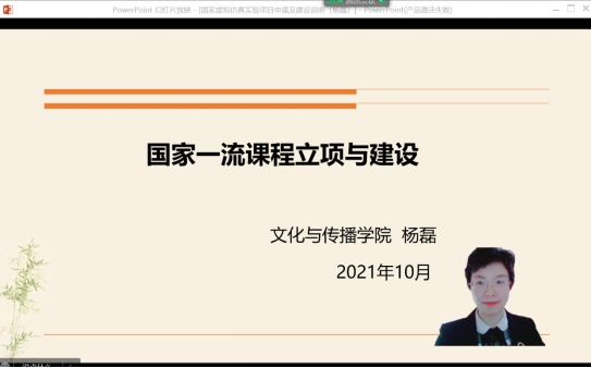 10月25日下午,文化与传播学院举办题为“国家一流课程的立项与建设”的线上教学沙龙活动。此次教学沙龙由文化与传播学院副教授杨磊主讲,来自文化与传播学院、会计学院的部分教师及研究生50余人参加了本次活动。