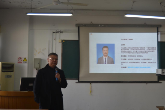 1018日下午,文化与传播学院在第一教学楼507教室举办题为“广告课程的实践性与服务社会功能的路径探析”教学沙龙活动,文化与传播学院教师王惠东为主讲人,来自文化与传播学院、会计学院的部分教师及研究生50余人参加了本次活动。