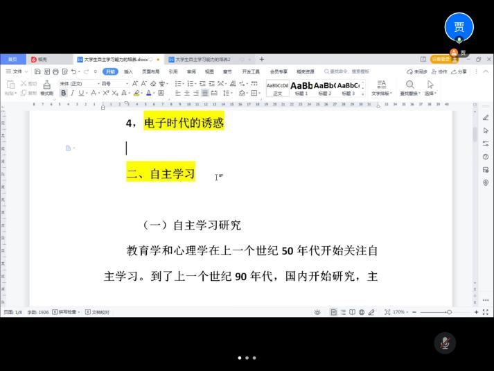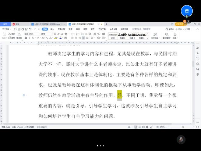 2022年4月18日晚7点,由教学评估与教师教学发展中心主办,文化与传播学院学院承办,主题为《大学生自主学习能力培养》教学沙龙活动在线上顺利开展。文化与传播学院汉语国际教育系主任贾宗普老师做了题为“略谈大学生自主学习能力培育”交流分享。来自文化与传播学院等各学院近50余名教师参加此次交流活动。