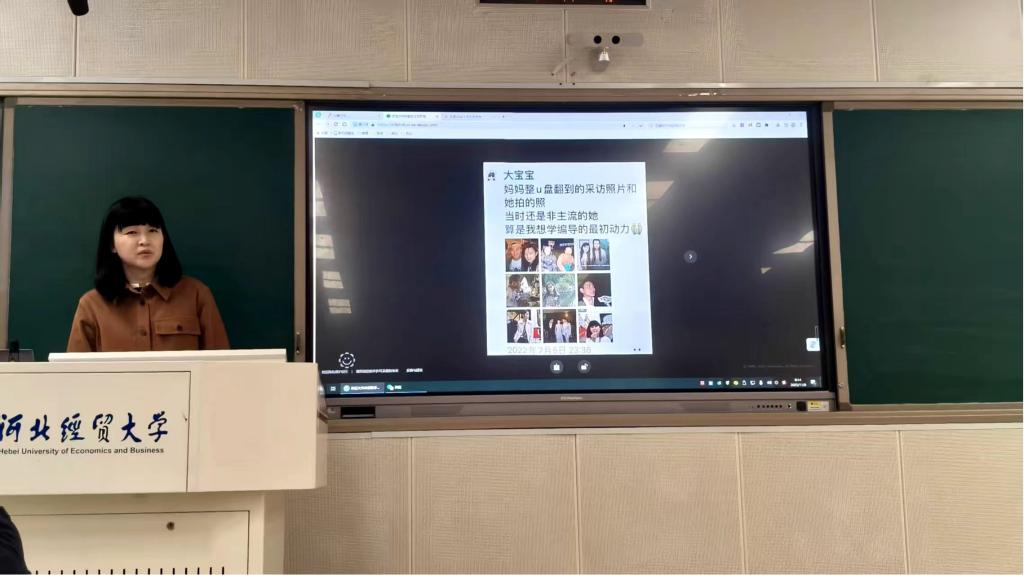 在人物采访经验分享环节,韩莉特别讲述了与知名艺术家韩羽的交往故事。从首次采访到后续为其专栏撰稿,多年的交流不仅让她积累了人物报道的丰富经验,更从对方身上学到了“坚守初心、精益求精”的职业态度。此外,她还展示了《H5|从山海关到嘉峪关,跟着董耀会穿越长城》《长城“楼长”张鹤珊》等优秀作品,通过案例解析,让同学们掌握H5、深度报道等不同形式内容的创作技巧。