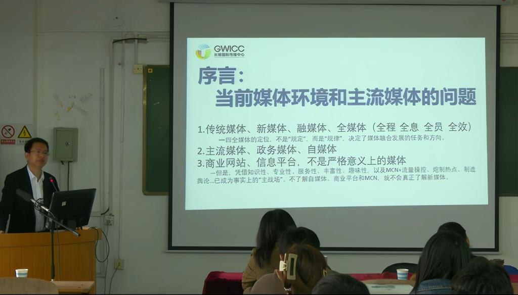 邀请长城新媒体集团长城国际传播中心主任曹朝阳在第一教学楼507教室作题为“融合新闻产品的策划与创作”的讲座,该讲座为新闻与传播行业发展前沿系列讲座第4讲,学院相关专业研究生、本科生及教师共60余人参加。