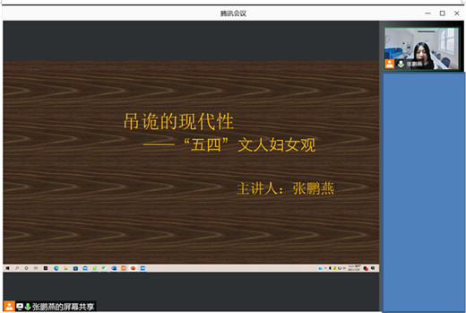 举办“双百论坛”,张鹏燕副教授作题为“吊诡的现代性——‘五四’文人妇女观”的线上讲座,学院部分教师、学生共60余人参加。